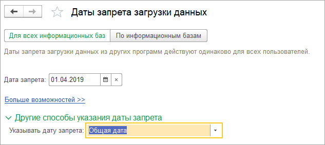 Устанавливайте дату запрета, чтобы загружать документы только за определенный период. Например, установите дату после сдачи регламентированной отчетности и начале нового квартала или года.