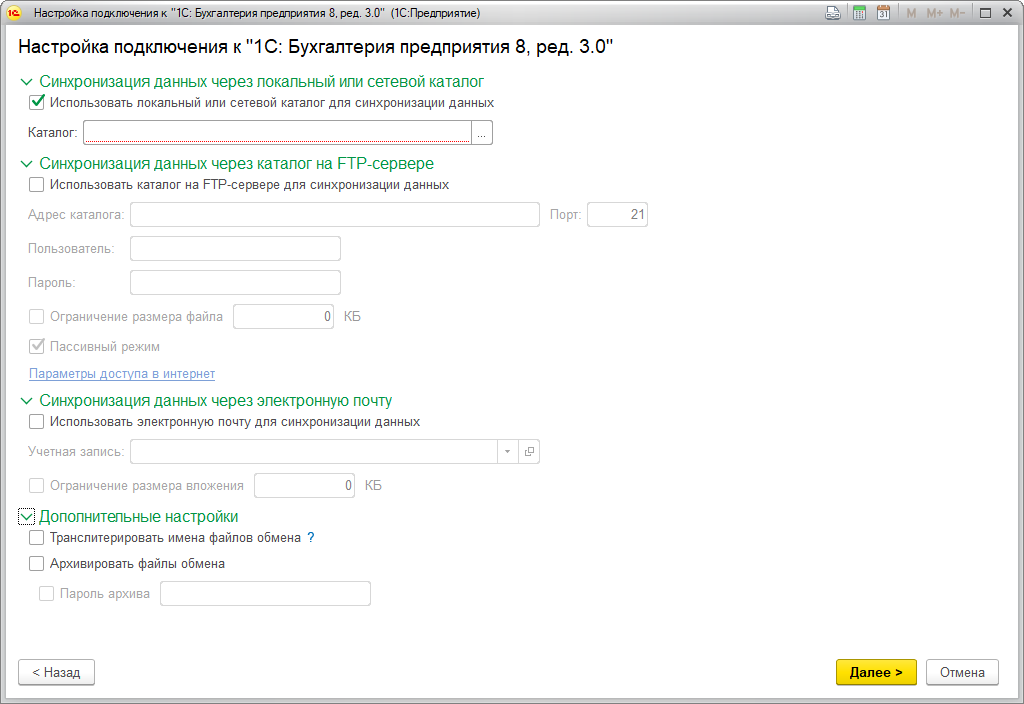Важно! Если настраивайте синхронизацию данных через файл, то перед этим шагом перейдите к ШАГ 2.