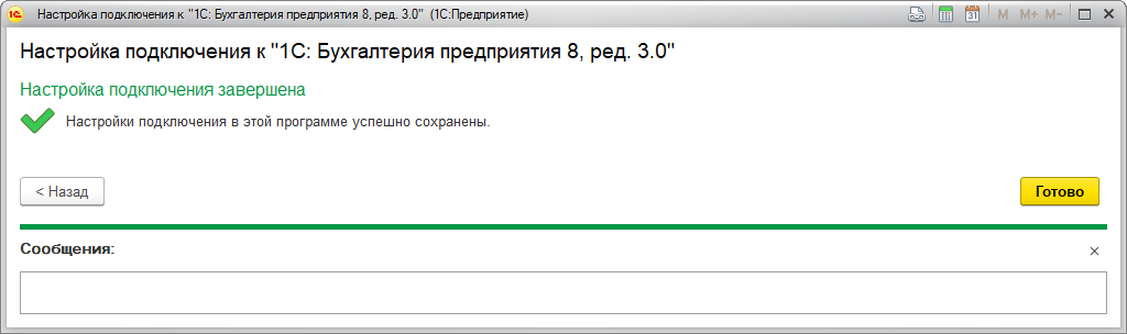 После окончания настроек в 1С:БП вернитесь к этому шагу и завершите настройки в