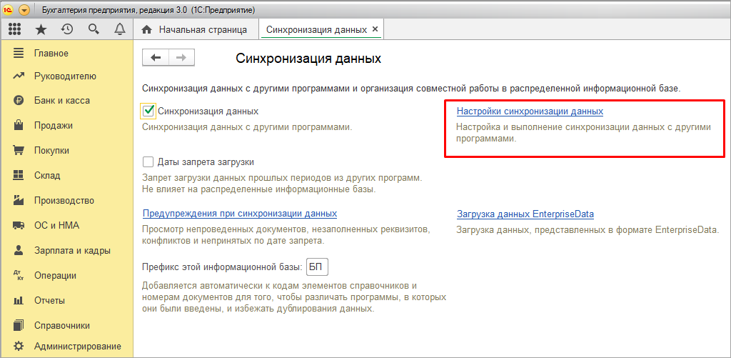 Укажите префикс информационной базы, с которой будет выполняться синхронизация