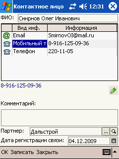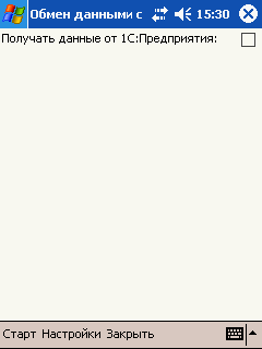 Для начала работы необходимо запустить 1С:Предприятие 8 для КПК и выполнить обмен данными, указав параметры настройки обмена. В ходе обмена на мобильное устройство передается с сервера мобильное приложение.
